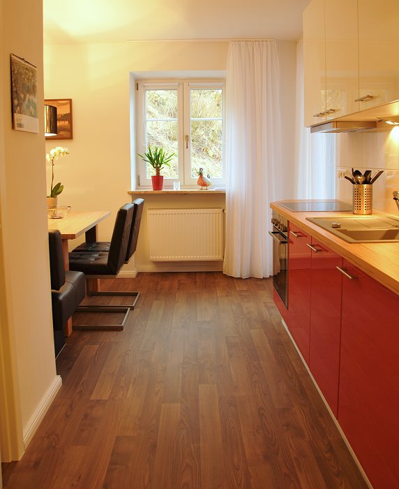 - eine große Küche mit Backofen, Mikrowelle, Spülmaschine, Nespresso-Maschine und alles wie man es von zu Hause gewöhnt ist, gemütliche Essecke mit Dinner-Sofa