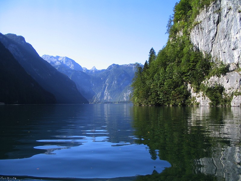 Machen Sie eine Fahrt über das samtgrüne, stille Wasser des Königssees zur Halbinsel St. Bartholomä mit seiner gleichnamigen barocken Wallfahrtskirche am Seeufer. Der über 6 km lange Königssee inmitten des einzigen Alpen-Nationalparks Deutschlands ist einer der saubersten Seen in Bayern und hat Trinkwasserqualität.